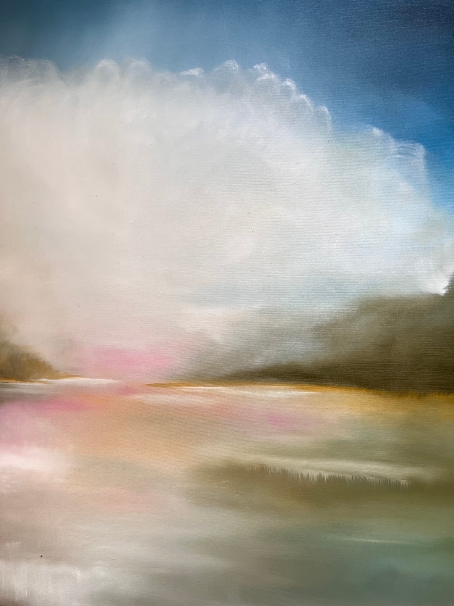 Somewhere in Scotland near a secret loch angels appear. This painting took sometime. But after adding more colours the "angels" started to appear.