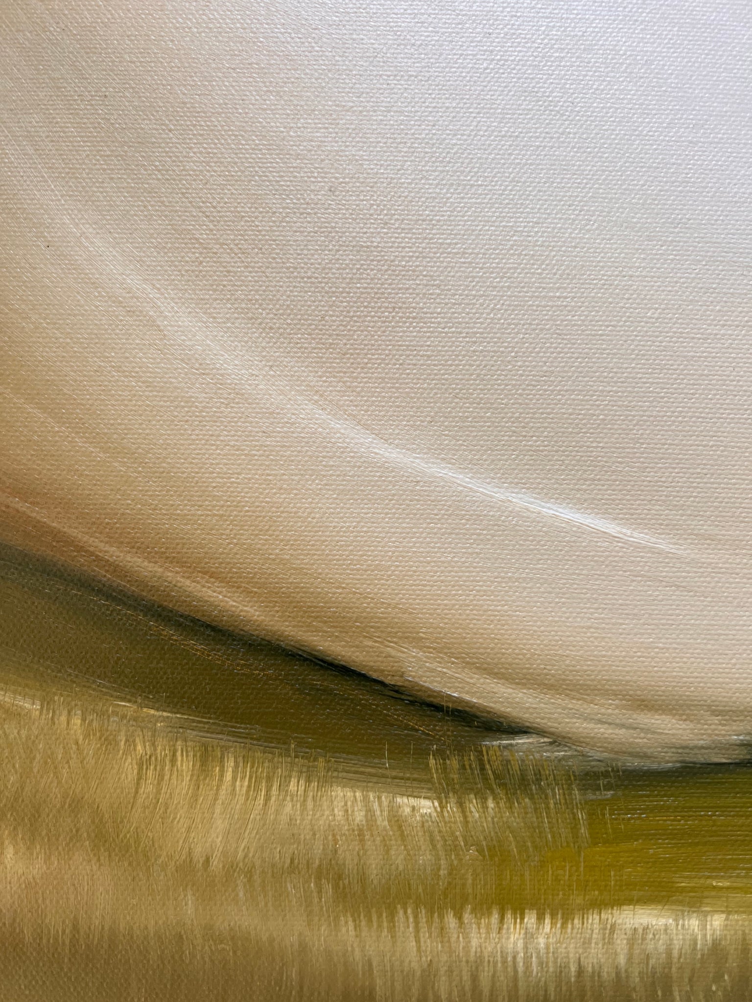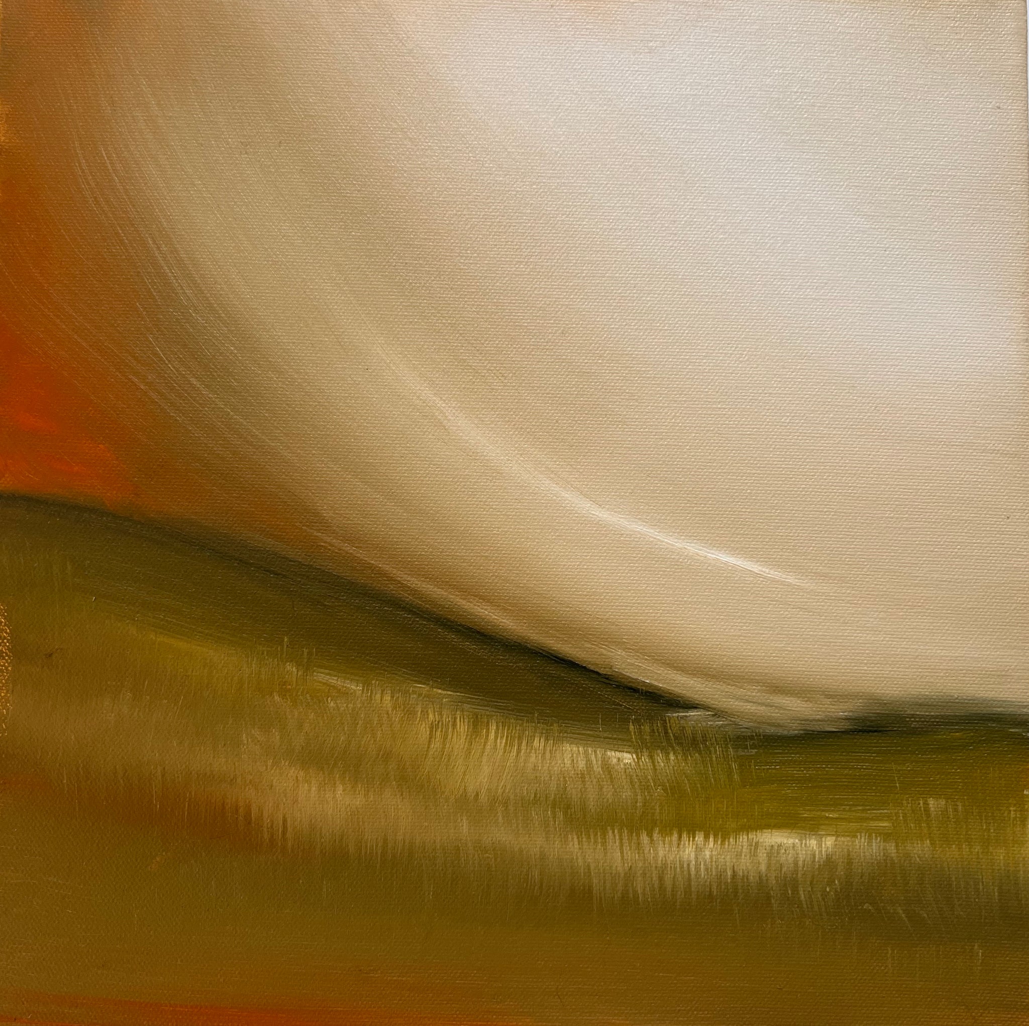 Warm winds is a wind swept landscape. The warmth is the orange sky and the landscape is suggested in olive greens.